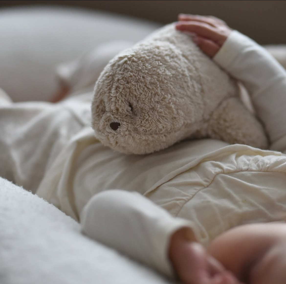 Moonie Organic er en myk og kosete plysj bjørn som hjelper babyer uten døgnrytme med å sove.